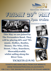 This May we are joined by The Persuaders Band, They will be playing 60’s and 70’s music, Hollies, Beatles,