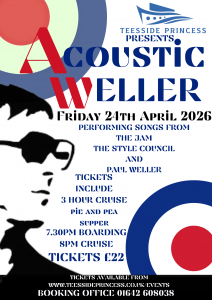 Our live Music bookings Kick off from February 2026 with Prism a tribute to Pink Floyd on board the Teesside Princess on Friday 7th February