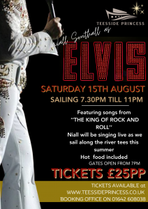 August is our second cruise of 2026 with Niall Southall as Elvis. Setting Sail Saturday 15th August..